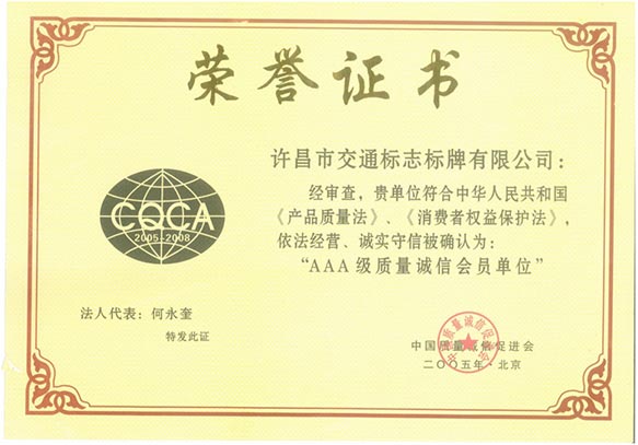 公司AAA級質量誠信會員單位